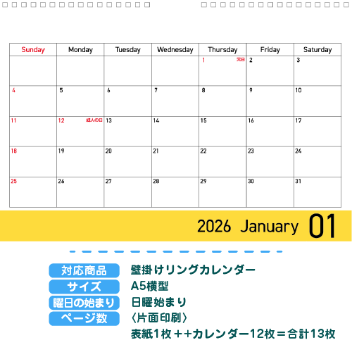 A5横型(カレンダー)